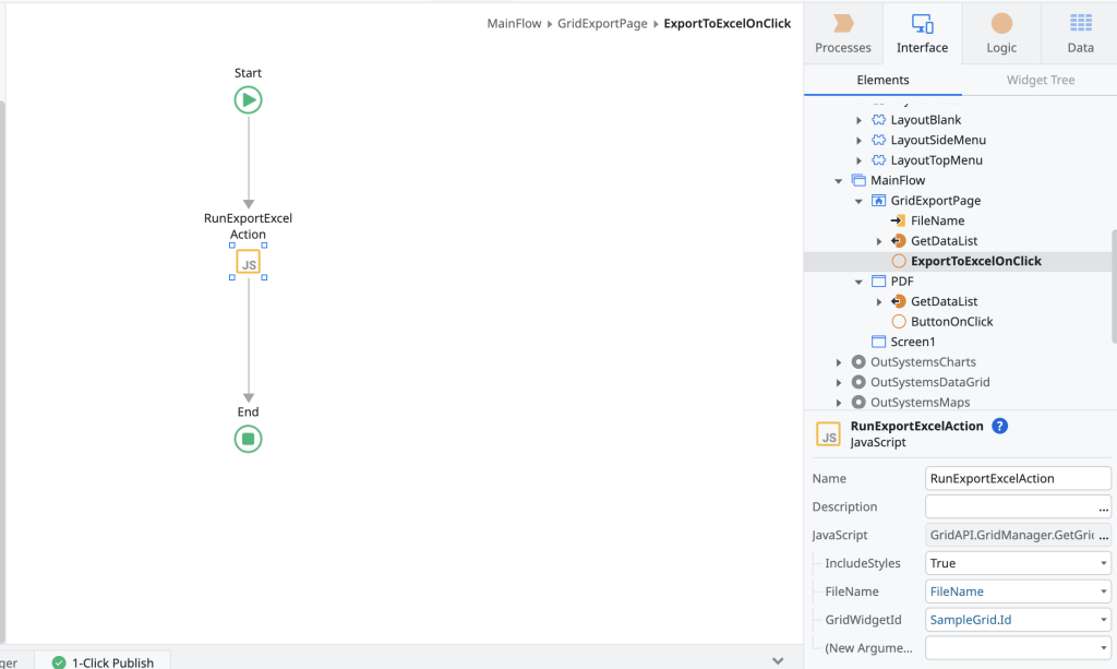 Export Grid To ExcelのOn Click Actionを作成