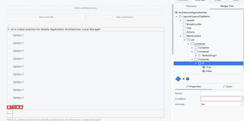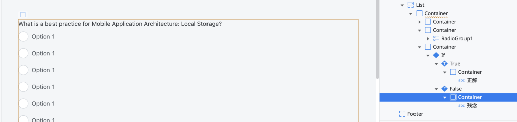 上記画像を参考にRadioGroupが入っているContainerと同じ階層ににさらにContainerを配置し、その中にIFウィジェットを配置します。
