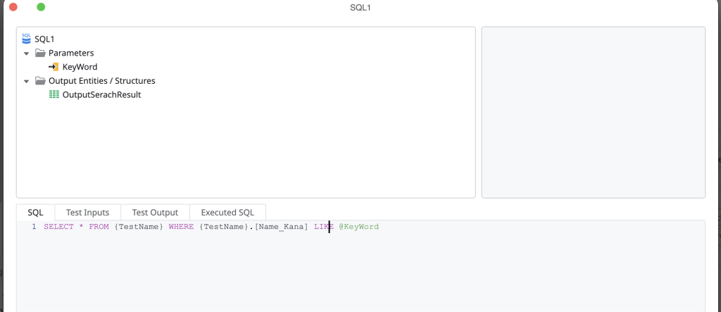 使用したSQLウィジェット自体は受け取ったKeyWordを使用して検索をするシンプルな構造です。